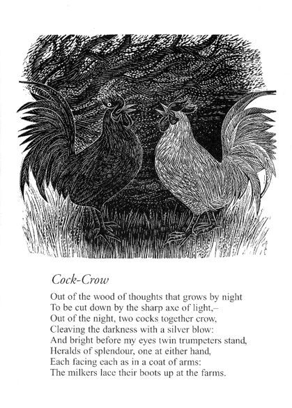 Cock-Crow Poem By Edward Thomas with original wood engraving by Yvonne Skargon