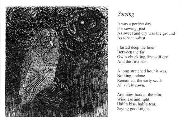 Sowing Poem by Edward Thomas with original wood engraving by Yvonne Skargon