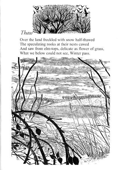 Thaw by Edward Thomas with original wood engraving by Yvonne Skargon
