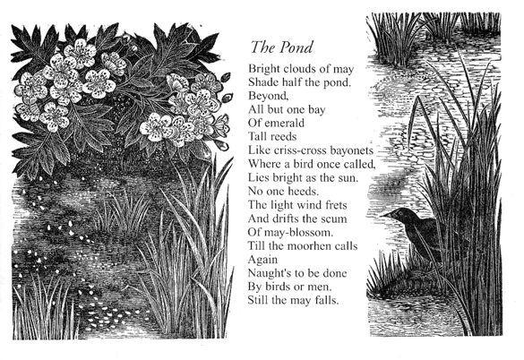 The Pond Poem by Edward Thomas with original wood engraving by Yvonne Skargon